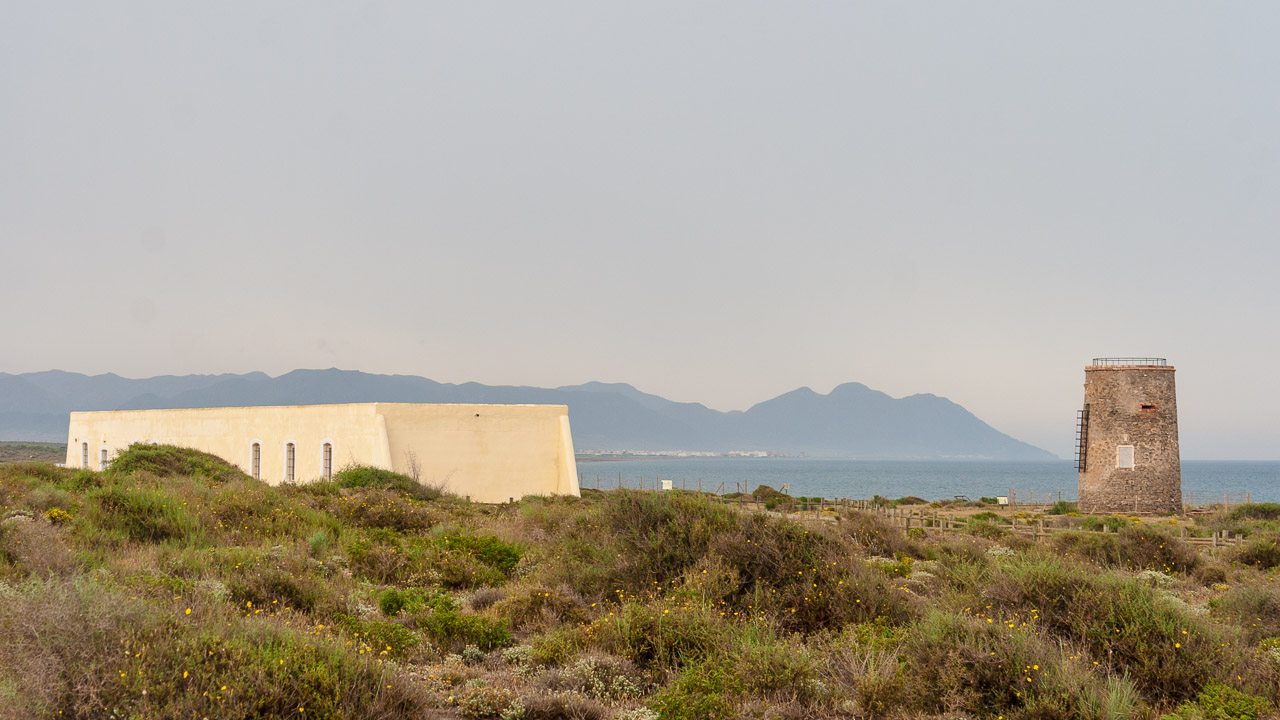 Entorno: Se encuentra en una zona diáfana, junto al mar y la ermita de Torre García y los restos de una factoría de salazón de pescado romana.