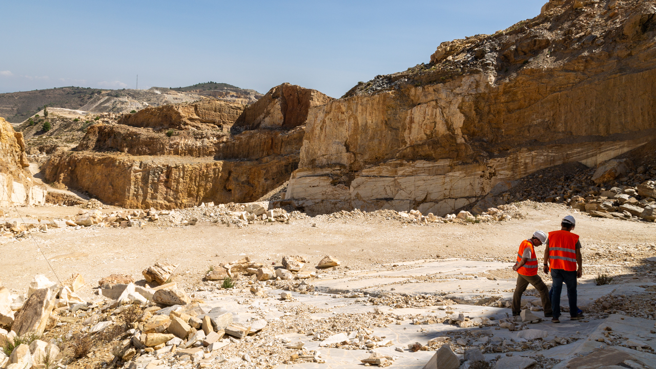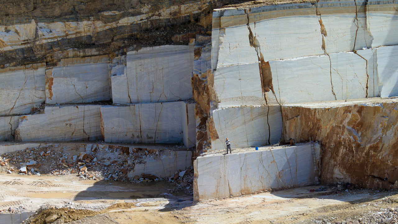 El mármol blanco queda a la vista de esta cantera de gran dimensión.