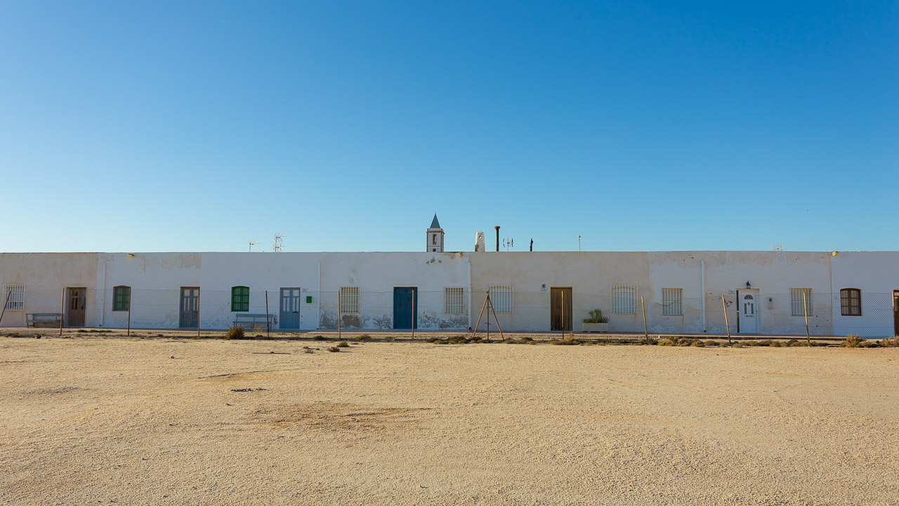 Entorno: Se encuentra junto a las salinas de Cabo de Gata en mitad de la playa de Las Salinas.